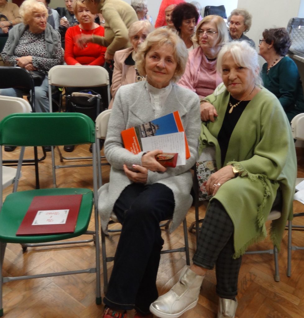 Przed występem nasze miłe – wiceprezeska Anna Biskup i koordynatorka Bogda Matachowska wręczyły dyplomy za piękną działalność Zespołu i słodki upominek .Zespół, który jest niezwykle pracowity i aktywny w występach i próbach przed nimi, począwszy od Seniorad poprzez występy w KCK, Woj. Domu Kultury, Klubach Seniora w mieście, Domach Opieki na terenie Kielc, również w konkursach śpiewaczych kolęd np. w Częstochowie z pierwszą nagrodą. Zespół w tym pięcioleciu wystąpił i otrzymał wiele nagród oraz wyróżnień, 100 razy. Grażyna Sygut jest chórzystką w zespole przy kościele garnizonowym w Kielcach.
