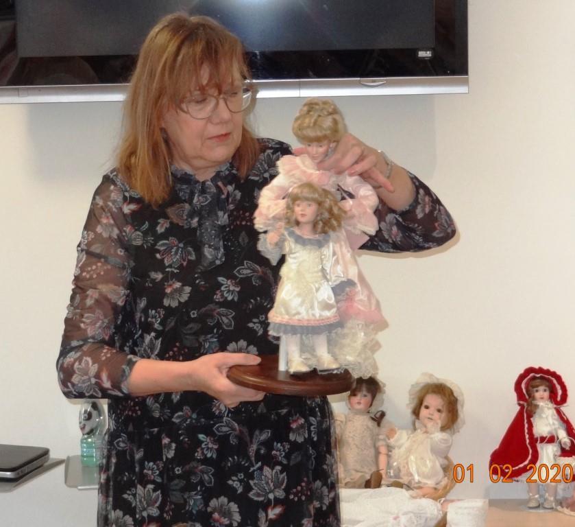 Dzień 1 lutego w Klubie przypominał nam nasze wczesne dzieciństwo, zabawy lalkami – bo Ania Krzyczkowska pokazywała i opowiadała o jednej ze swych licznych pasji, a mianowicie o swojej kolekcji lalek. Zbiera je już od 30 lat, lalki odzwierciedlają życie ludzkie. Pokazywane lalki (to już 2-gi występ w naszym klubie) wykonane są z porcelany lub biskwitu (spieczona masa ceramiczna), najstarsza pochodzi z 1866r.