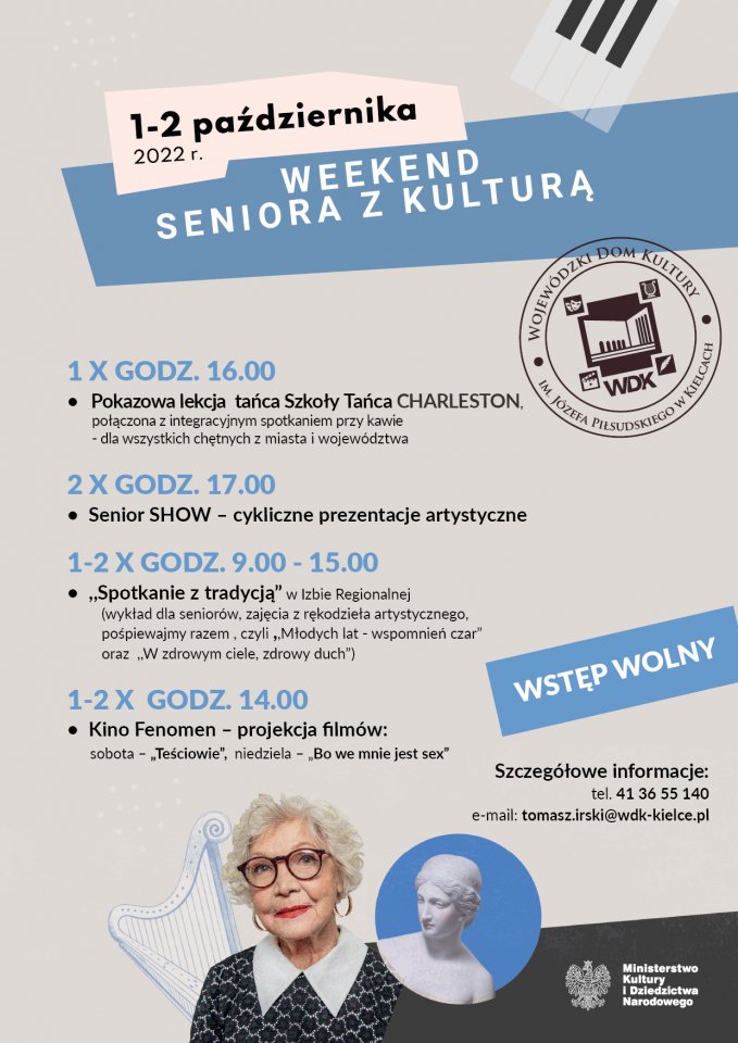 Zapraszamy 1 i 2 października do Wojewódzkiego Domu Kultury na “Weekend seniora z kulturą”.