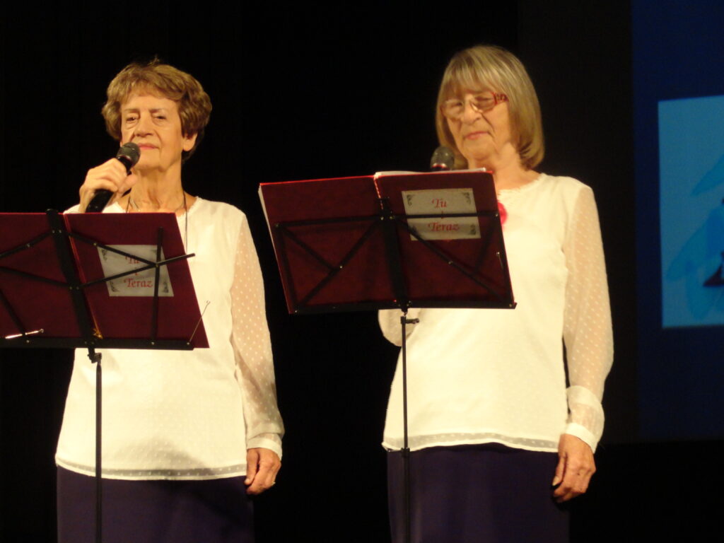“Tu i Teraz” naszego UTW. Piosenki z okresu 20 lecia międzywojennego min. “Tango Milonga”, “Oczy czarne”, “Przy kominku” pozwoliły nam się miło zrelaksować .