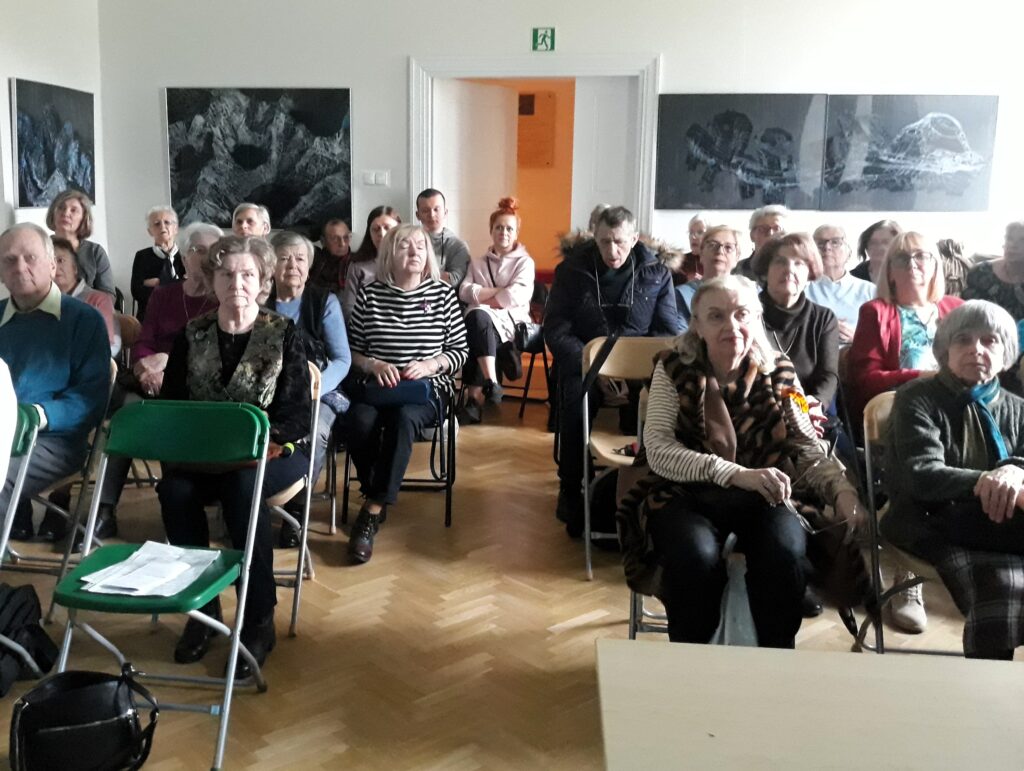 Prelekcja wzbogacona była dużą ilością zdjęć, które licznie zgromadzeni słuchacze oglądali z wyraźnym zainteresowaniem.