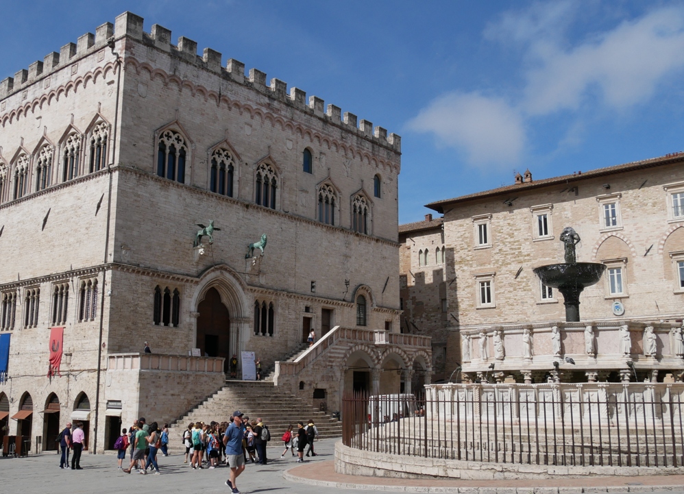 Najwięcej ciekawych i pięknych obiektów historycznych mieści się w centrum przy Piazza IV Novembre. Wśród nich wyróżnia się Palazzo dei Priori – dawna siedziba władz miasta, a obecnie także muzeum malarstwa umbryjskiego. W budynku można zobaczyć piękną Salę Notariuszy udekorowaną w XV przez pochodzącego z Perugii wybitnego malarza Perugino. Stojąca naprzeciwko ratusza gotycka Katedra San Lorenzo skrywa relikwię – pierścień ślubny Maryi. Plac zdobi wspaniała XIII-wieczna Fontanna Maggiore bogato zdobiona rzeźbami.