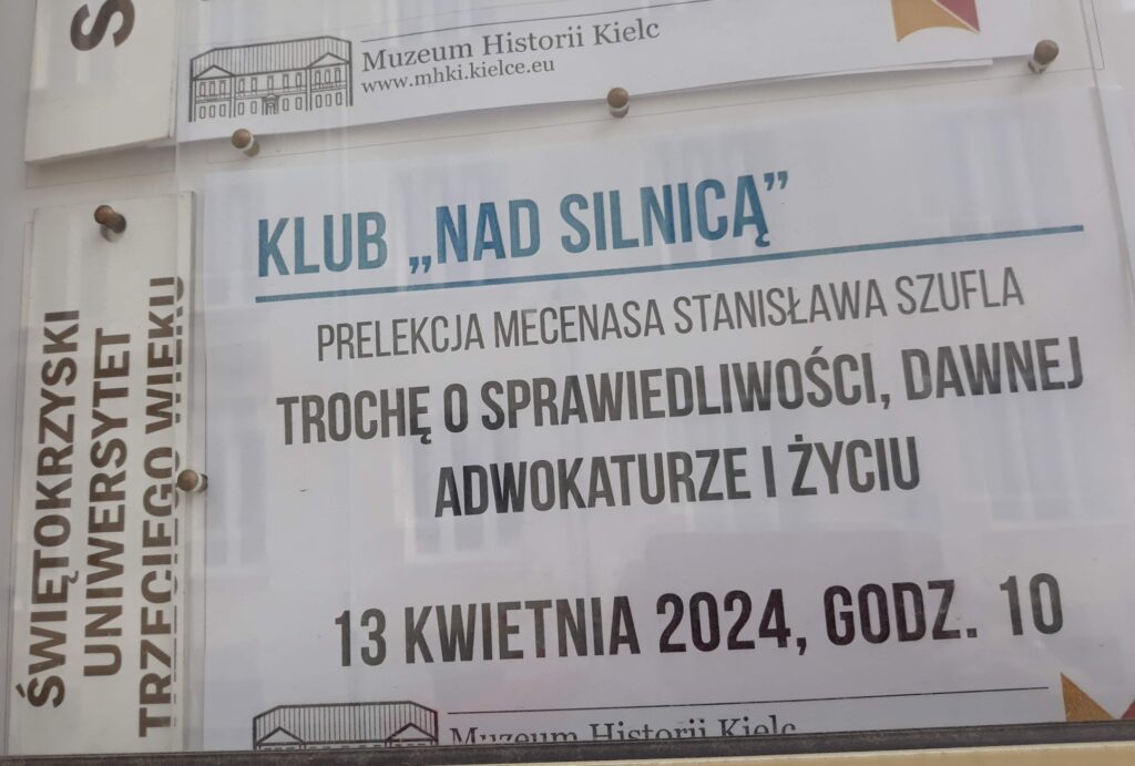 W sobotę 13 04 2024 na spotkaniu „Klubu nad Silnicą” gościliśmy pana mecenasa Stanisława Szufla ,który wygłosił prelekcję pt „Trochę o sprawiedliwości, dawnej adwokaturze i życiu”.